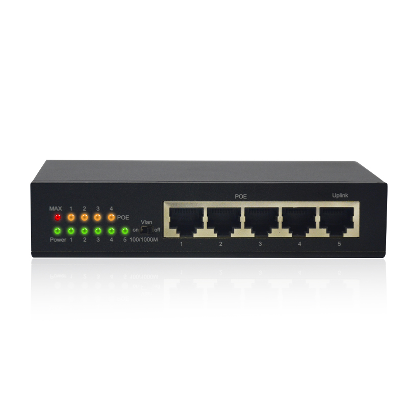 The MT-GS105D-POE Desktop Switch is a newly designed 5-port managed POE switch that provides an independent uplink port with 1 to 4 ports supporting the IEEE802.3AF / AT standard for monitoring engineering and network engineering, Can be wireless AP, IP cameras and other equipment power supply, plug and play, providing a low cost and high performance network solutions.