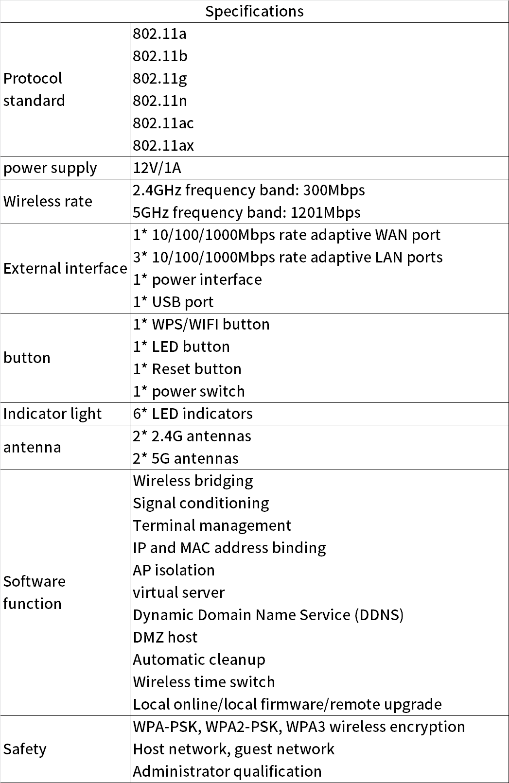 WiFi 6 11AX 1800Mbps Wireless Router
